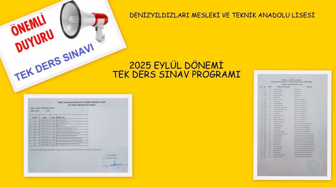 TEK DERS SINAVINA GİRECEK ÖĞRENCİLERİMİZ VE SINAV TAKVİMİ AŞAĞIDA SİZLERLE PAYLAŞILMIŞTIR.