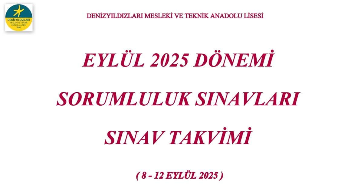 EYLÜL 2025 DÖNEMİ SORUMLULUK SINAV TAKVİMİ AŞAĞIDA SİZLERLE PAYLAŞILMIŞTIR.